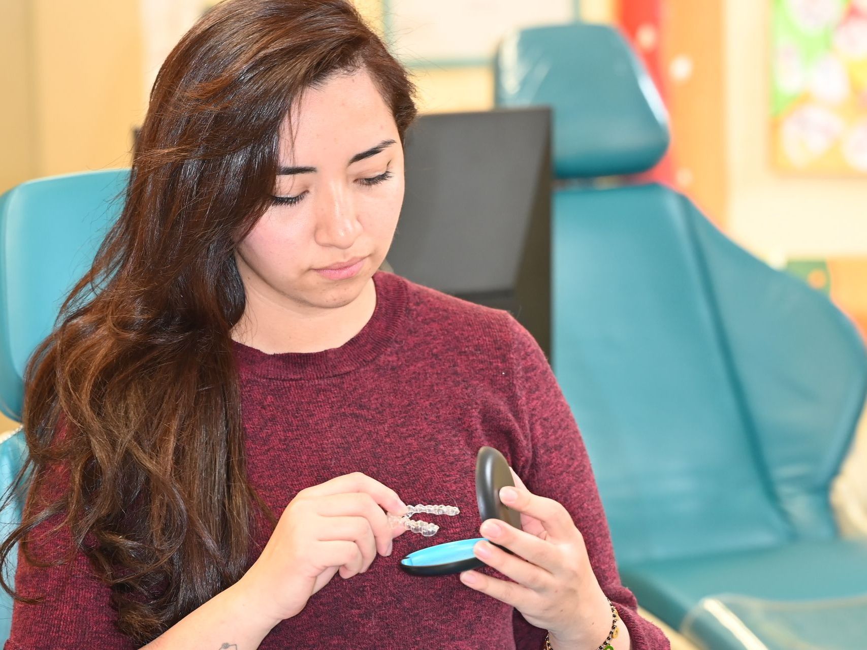 Invisalign è un apparecchio invisibile che va indossato tutto il giorno e va tolto per mangiare e per lavarsi i denti.